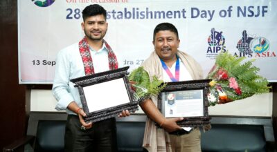खेलकुद पत्रकार मञ्चद्वारा खेलकुद पत्रकार बोगटीसहित २ जना सम्मानित