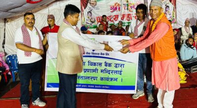 कामना सेवा विकास बैंकद्वारा श्रीकृष्ण प्रणामी मन्दिरलाई रेफ्रिजेरेटर हस्तान्तरण