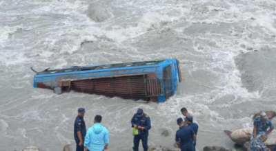मर्स्याङ्दी नदीमा बस खस्यो, चालक बेपत्ता