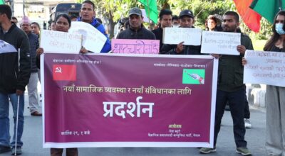 माइतीघरमा नयाँ सामाजिक व्यवस्था र संविधानको मागसहित वैज्ञानिक समाजवादी पार्टीको प्रदर्शन