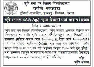 कृषि स्नातक तहमा भर्ना खुल्यो