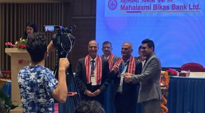 महालक्ष्मी विकास बैंक बिएफआईएन एण्ड डि एक्सीलेन्स अवार्ड-२०२३ द्वारा सम्मानित