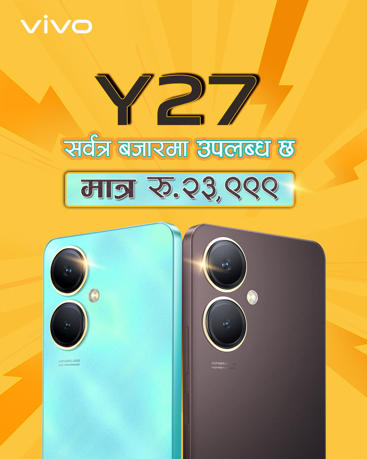 ४४ वाटको फ्ल्यास चार्जिङ सहितको भिभो वाइ २७ नेपाली बजारमा
