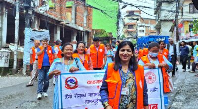 एकै पटक सबै वडामा डेङ्गी रोग फैलाउने लामखुट्टेका लार्भा नष्ट गर्दै काठमाडौं महानगर