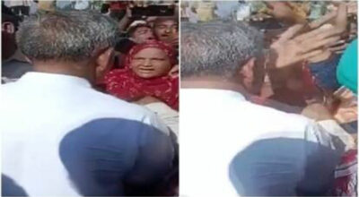 बाढीको निरीक्षण गर्न गएका सांसदलाई महिलाले हानिन् थप्पड !