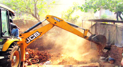 नारायणगढका सडक सीमाभित्रका संरचनामा डोजर चलाइँदै