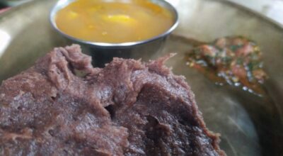 कोदोको ढिडो र सिस्नोको तरकारीको स्वाद पस्कदै गुरुङ घरबास