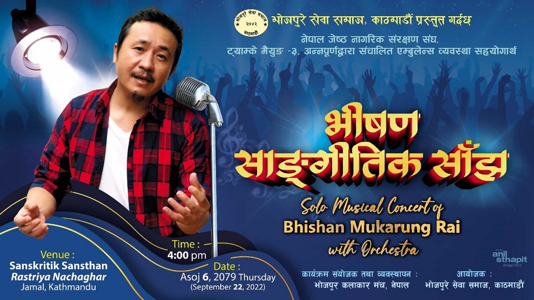 काठमाडौं । एम्बुलेन्स संचालन सहयोगार्थ चर्चित गायक भिषण मुकारुङको एकल साँझ हुने भएको छ ।…