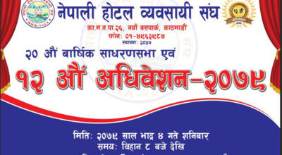 नेपाली होटल व्यवसायी संघको १२औं महाधिवेशन भदौ ४ मा हुने