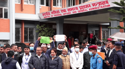 सरकारविरुद्ध मधेश प्रदेशका मुख्यमन्त्रीसहित मन्त्री र सांसदहरुकाे धर्ना