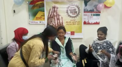जुम्लाका महिलालाई हरियो चुरा र मेहेन्दीले रङगाउँदै सन्राइज बैंक