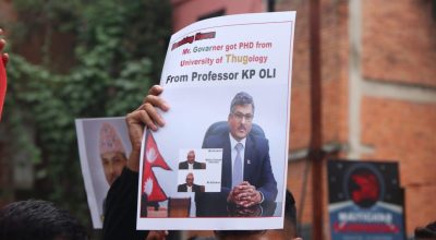 काठमाडौं। नेपाल राष्ट्र बैंकका गभर्नर महाप्रसाद अधिकारीको राजीनामा माग गर्दै विभिन्न विद्यार्थी संगठनहरुले प्रदर्शन जारी…