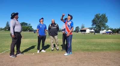 ओन्टारियोविरुद्ध टस जितेर ब्याटिङ गर्दै नेपाल