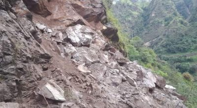 पहिरोले डुम्रे-बेंशीसहर चामे सडक अवरुद्ध