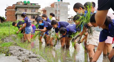 रोपाईंमा रमाए भक्तपुरका विद्यार्थी