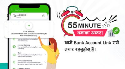 इसेवाको अफर, बैंक एकाउन्ट लिंक गरी कारोबार गर्दा ५५ रुपैयाँ क्यास ब्याक पाइने
