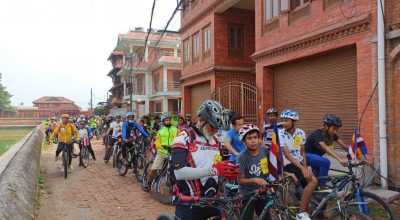बुद्ध जयन्तीको अवसरमा भक्तपुरमा बौद्ध सम्पदाको दर्शनमा साइकल यात्रीहरू