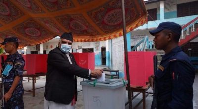 मेयरका उम्मेदवार पौडेलद्वारा मतदान