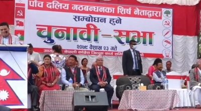 पाँच दलीय गठबन्धनद्वारा आचारसंहित उल्लघंन, सडक अवरुद्ध गरेर सभा
