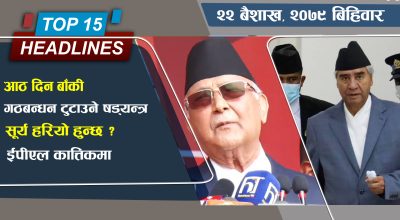 आज दिनभरका मुख्य-मुख्य खबर, हेर्नुहोस् टप १५ हेडलाइन्स् (भिडियोसहित)