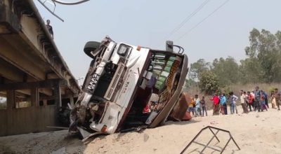 सर्लाहीमा पुलबाट बस खस्दा ४ जनाकाे मृत्यु, ३ दर्जन यात्रु घाइते