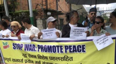 पुल्चोकस्थित संयुक्त राष्ट्रसंघ कार्यालय अगाडि प्रदर्शन