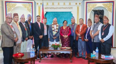 राष्ट्रपति पौडेललाई दोलखा भीमेश्वर मन्दिरको महाप्रसाद प्रदान
