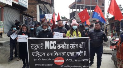 एमसीसी सम्झौता विरुद्ध खोटाङमा युवा तथा विद्यार्थी संगठनको प्रदर्शन