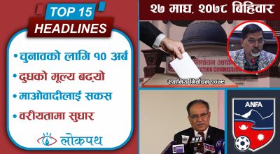 आज दिनभरको मुख्य १५ समाचार हेर्नुहोस् (भिडीयोसहित)