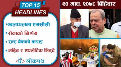आज दिनभरको मुख्य १५ समाचार हेर्नुहोस् (भिडियोसहित)