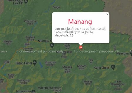 भूकम्प: मध्यरातमा मनाङमा धक्का, काठमाडौँमा कम्पन