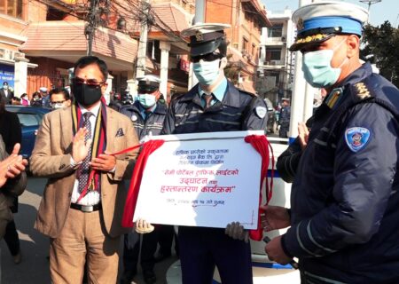 सनराइज बैंकद्वारा महानगरीय ट्राफिक प्रहरी महाशाखालाई ट्राफिक लाइट हस्तान्तरण