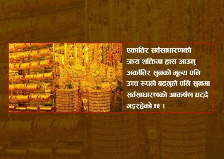 बैंकमा थन्कियो २ सय ५१ केजी सुनः क्रय शक्ति ह्रास हुँदा छैन सुनमा आकर्षण
