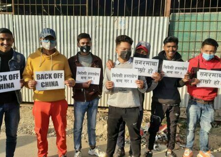 चिनियाँ दूतावास नजिकै युवाहरूको नारा- ‘ब्याक अफ चाइना’
