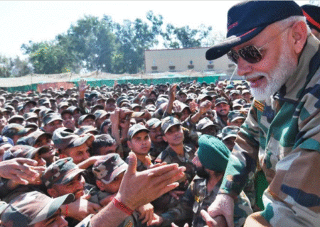 दिपावलीका बेला बोर्डर पुगे भारतीय प्रधानमन्त्री नरेन्द्र मोदी, नरावणे पनि साथमा