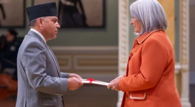 राजदूत पौड्यालद्वारा गभर्नर जनरलसमक्ष ओहोदाको प्रमाणपत्र प्रस्तुत