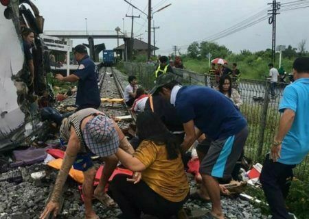 थाइल्याण्डमा रेल र गाडी ठोक्किँदा १७ जनाको मृत्यु