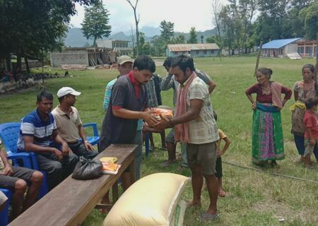 बाढीबाट विस्थापित परिवारलाई अन्तर्राष्ट्रिय मोहन्याली युवा समाजद्वारा राहत वितरण