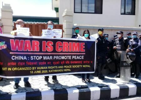 युद्ध रोक्न माग राख्दै चिनियाँ दूतावास अगाडि धर्ना