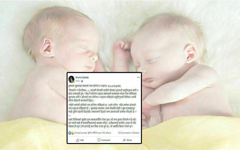 हुम्लामा जुम्ल्याहा बच्चाको नाम कोरोना र भाइरस राखेकोमा डाक्टर अरुणाको आपत्ति, फेसबुकमा लेखिन् – तुरुन्त परिवर्तन गर्नुपर्छ