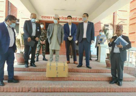 सुमी फर्मास्युटिकलद्धारा सरकारलाई १० हजार लिटर सेनिटाइजर हस्तान्तरण
