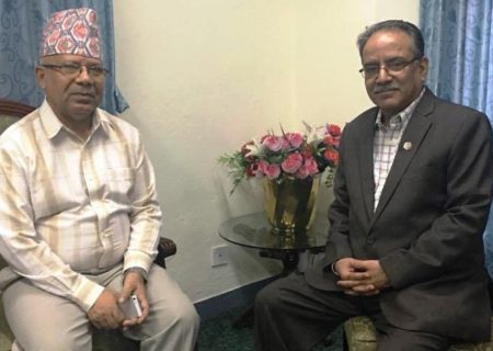 सचिवालय बैठक अघि प्रचण्ड–नेपालबीच भेट