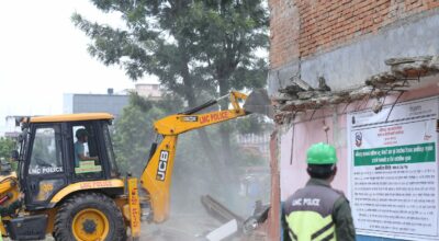 ललितपुर महानगरद्वारा लगनखेलको सार्वजनिक जग्गा अतिक्रमण निर्मित संरचना भत्काइयो