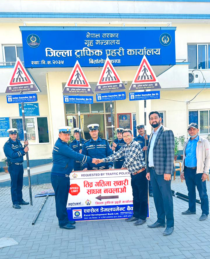 काठमाडौं । एक्सेल डेभलपमेन्ट बैंकले जिल्ला ट्राफिक प्रहरी कार्यालय झापालाई ट्राफिक चिन्ह सहितको पोल हस्तान्तरण…