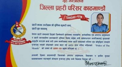 डीएसपी पूर्णिमा चन्द उत्कृष्ट प्रहरी घोषित