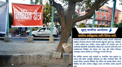 निषेधित क्षेत्र घोषणाको विरोधमा नागरिक आन्दोलनको विरोध मार्च
