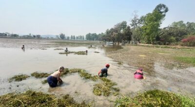 मोटरबोट सञ्चालनका लागी सफा गरिँदै बुलबुले ताल