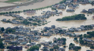जापानमा भारी वर्षापछि आएको बाढीले दश घर बगायो, बीस जना बेपत्ता