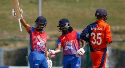 त्रिकोणात्मक टी-ट्वेन्टी क्रिकेट : नेपालको कीर्तिमानी ब्याटिङ, नेदरल्याण्ड्सलाई २३९ रनको चुनौती