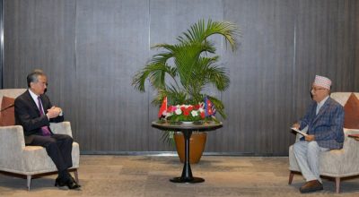 ओलीपछि प्रचण्डसँग चिनियाँ विदेशमन्त्री यीकाे भेटवार्ता